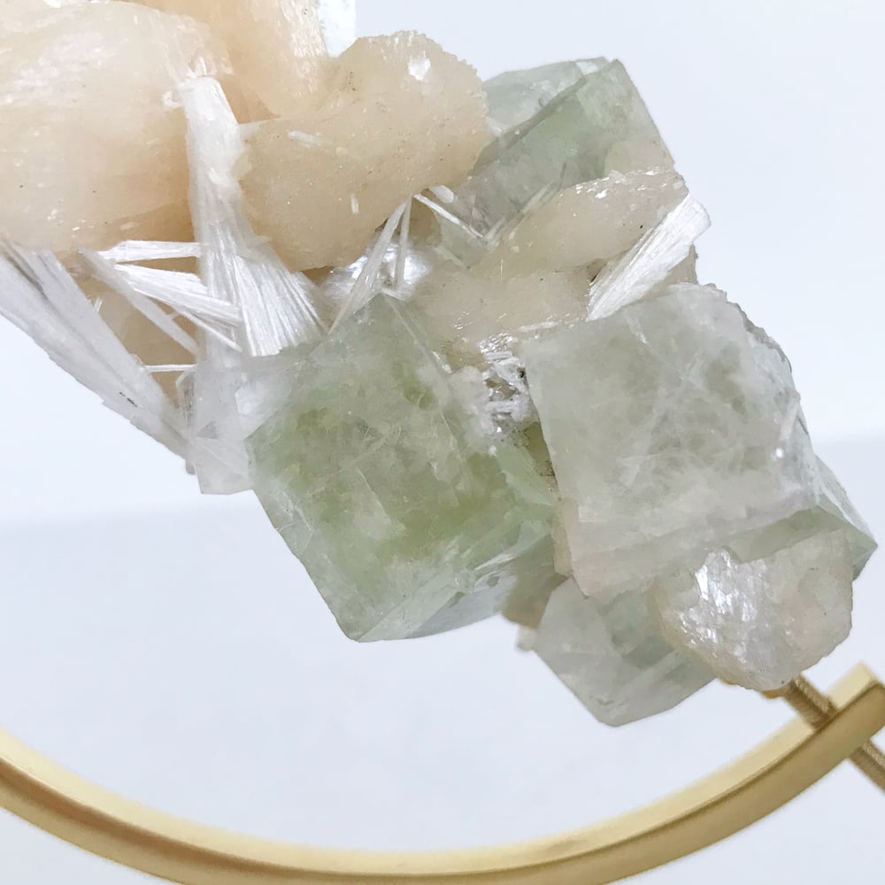 Green Apophyllite/Stilbite/Scolecite no.14 + Brass Arc Stand