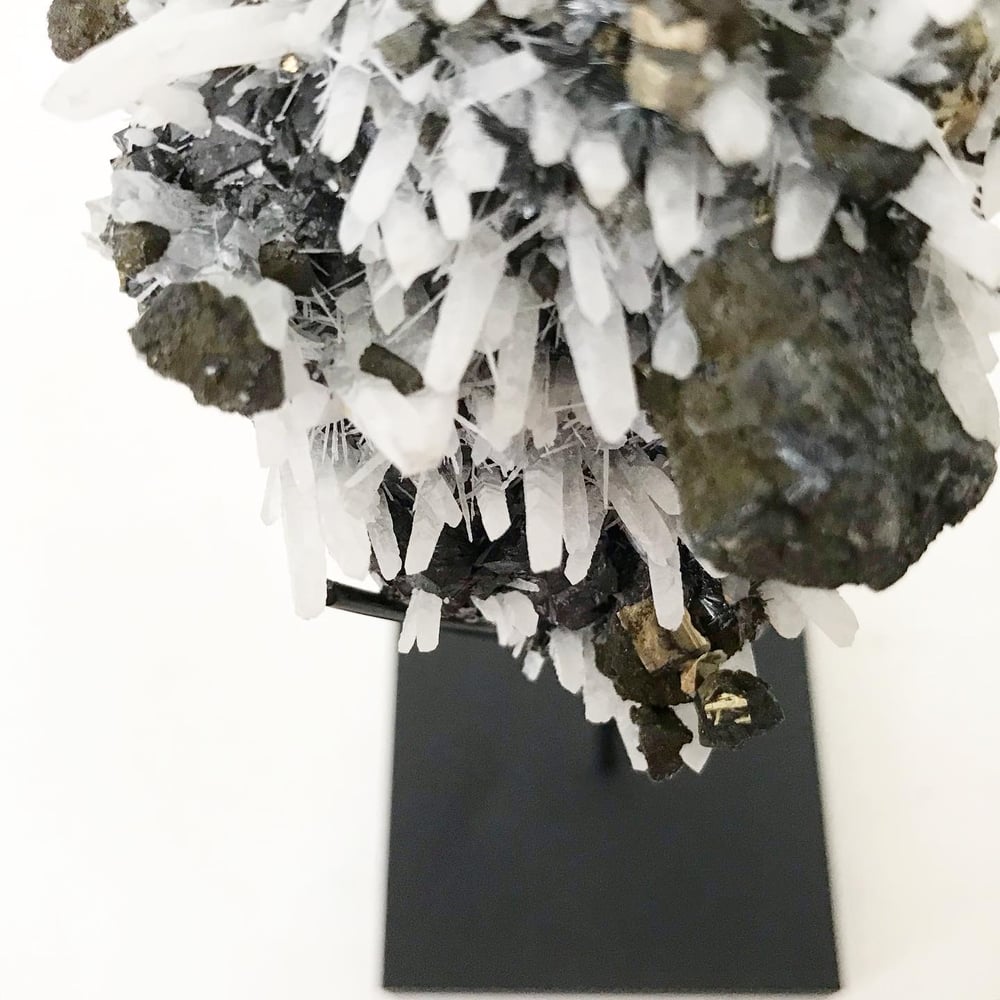 Quartz/Galena/Pyrite no.20 + Matte Black Lucite Stand