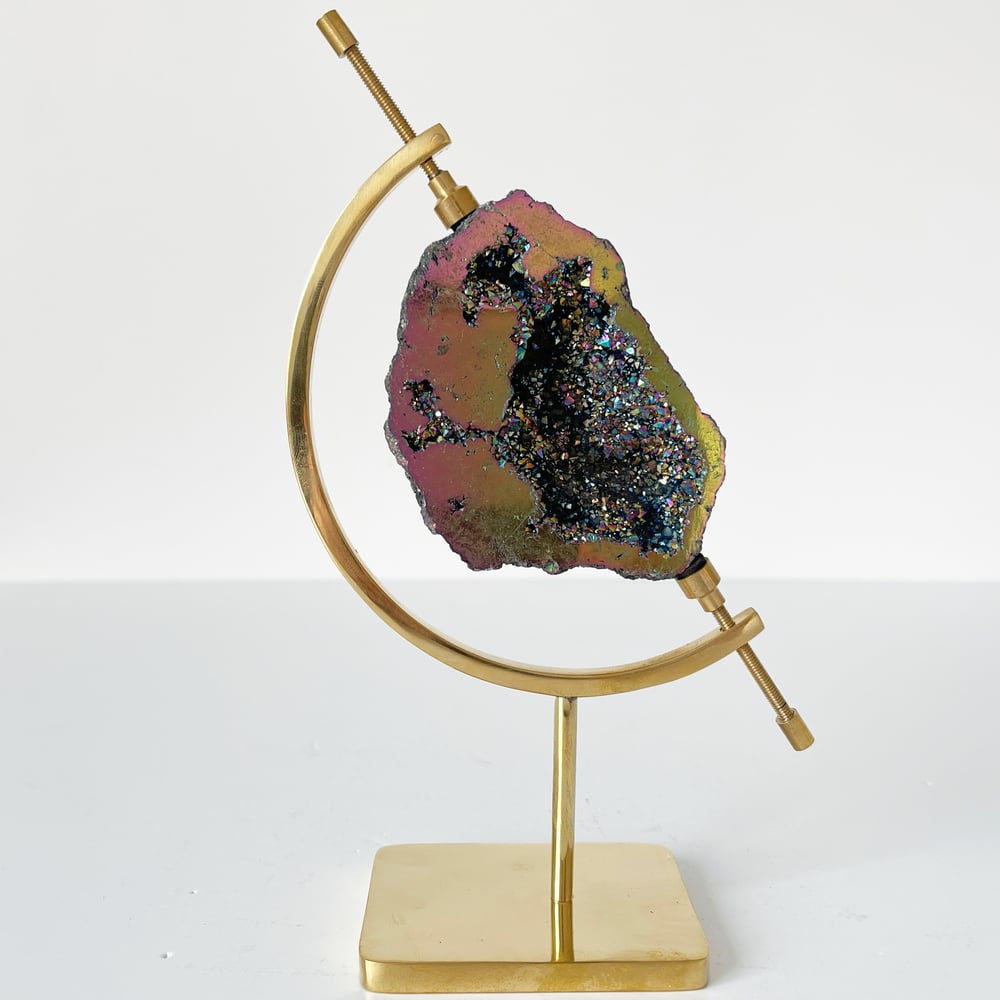 Titanium Coated Calcite no.165 + Brass Arc Stand